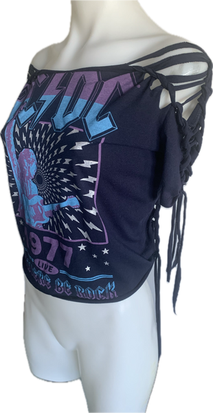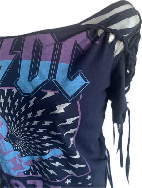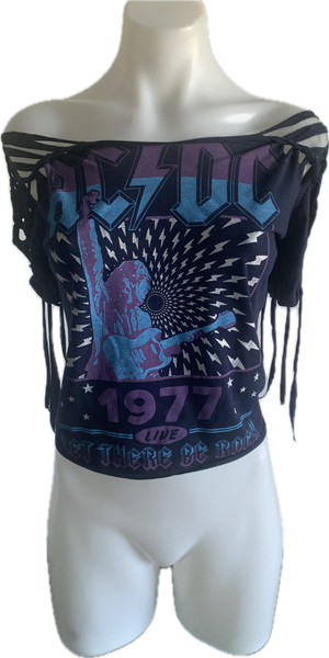 - Rock n roll in our one of a kind Backless hand shredded t shirt